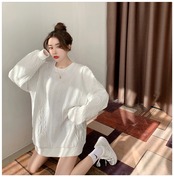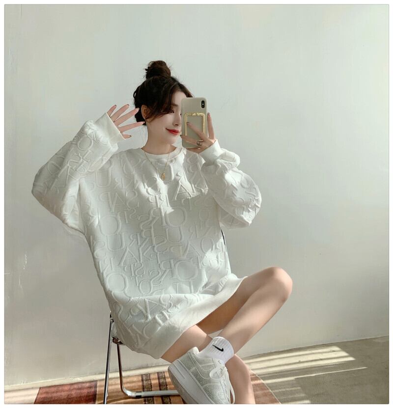 トップス ワンピース ルームウェア プルオーバー パーカー トレーナー スウェット 部屋着 ミディアム丈 袖あり 長袖 ボリューム袖 ドロップショルダー ラウンドネック ワイド 厚手 かわいい 大人可愛い カジュアル おしゃれ かっこいい ラフ メンズライク スポーティー ルーズ クール 柄 アルファベット柄 オールシーズン レディース マタニティ 学生 通学 デート お出かけ 女子会 お泊まり 休日 運動 アウトドア 着回し 普段使い 体系カバー フリーサイズ 大きい 大きめ ゆったり ゆる 白 ホワイ