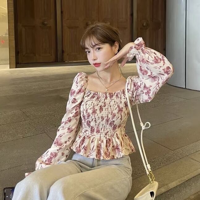トップス プルオーバー ショート ショート丈 袖あり ボリューム袖 パフスリーブ スクエアネック オフショルダー オフショル フレア フリル 2way ギャザー 大人可愛い きれいめ カジュアル 大人 おしゃれ レトロ こなれ感 ラフ ラブリー ガーリー 主役級 存在感 抜け感 休日感 都会的 ラグジュアリー ハイエンド 花柄 フラワー 春 10代 20代 30代 レディース 女性用 デート お出かけ 休日 イベント リゾート 旅行 海 ホテル レストラン ショッピング 合コン ブルー グレー ピンク