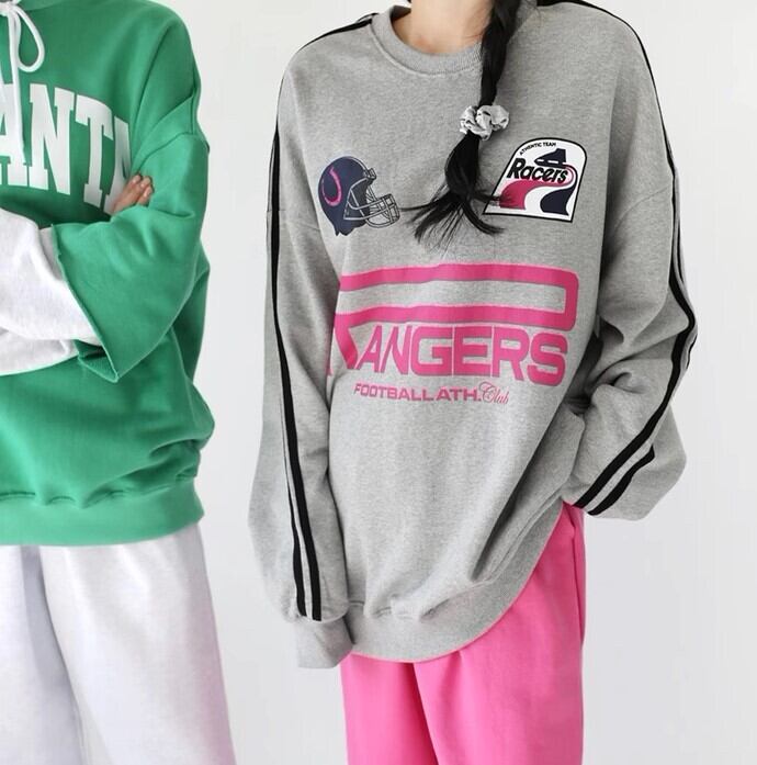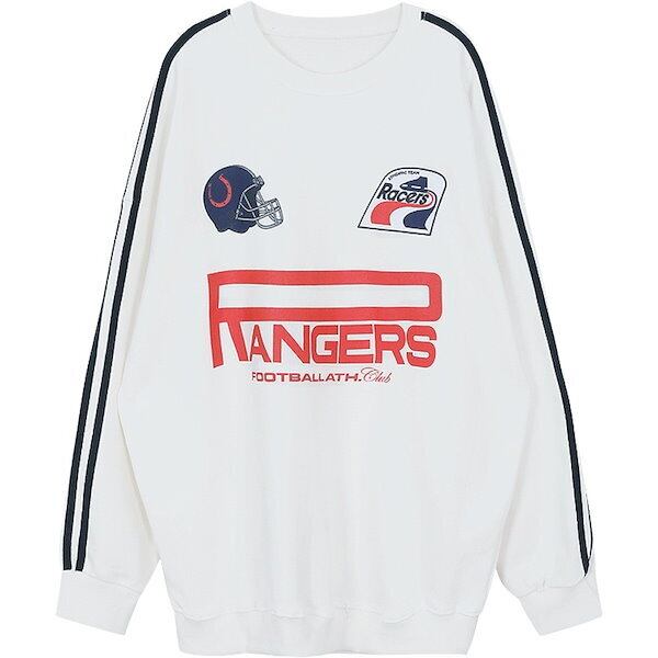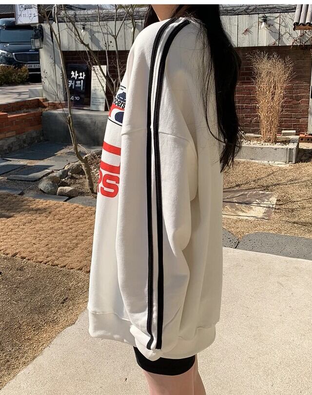 トップス プルオーバー トレーナー スウェット 袖あり 長袖 ボリューム袖 ドロップショルダー 萌袖 クルーネック かわいい カジュアル おしゃれ お洒落 かっこいい ラフ メンズライク マニッシュ ボーイッシュ スポーティー ガーリー ルーズ クール プリント 春 秋 冬 学生 通学 デート お出かけ 女子会 お泊まり 休日 アウトドア 着回し 普段使い お揃い 双子 韓国 韓国系 楽ちん インスタ映え フリーサイズ ゆったり ゆる ホワイト ブラック グレー