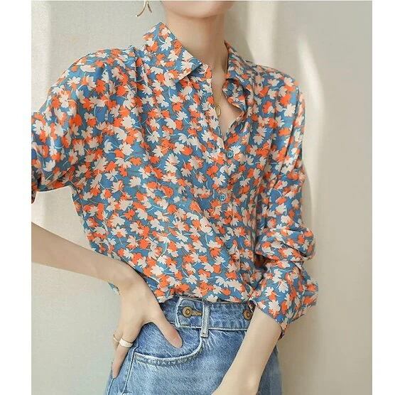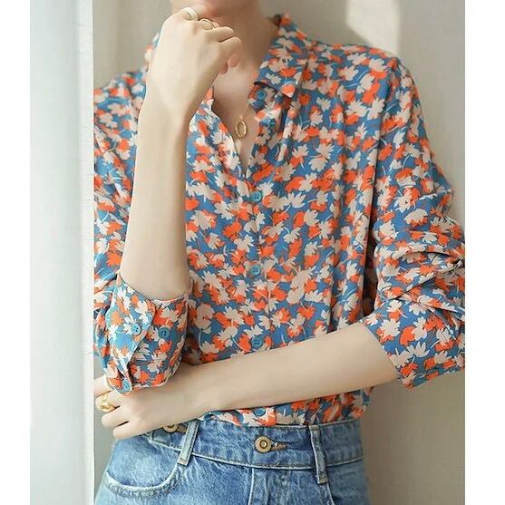 トップス シャツ 袖あり 長袖 萌袖 襟付き 前開き かわいい 大人可愛い きれいめ シンプル カジュアル 大人 上品 おしゃれ レトロ 大人女子 こなれ感 ラフ マニッシュ ラブリー キュート ガーリー ルーズ 個性的 クール エレガント モダン 主役級 存在感 とろみ感 抜け感 花柄 フラワー ボタニカル 春 秋 10代 20代 30代 レディース デート お出かけ 女子会 休日 着回し 普段使い 重ね着 韓国 オルチャン ファッション コーデ スタイル 楽ちん 体系カバー トレンド インスタ映え
