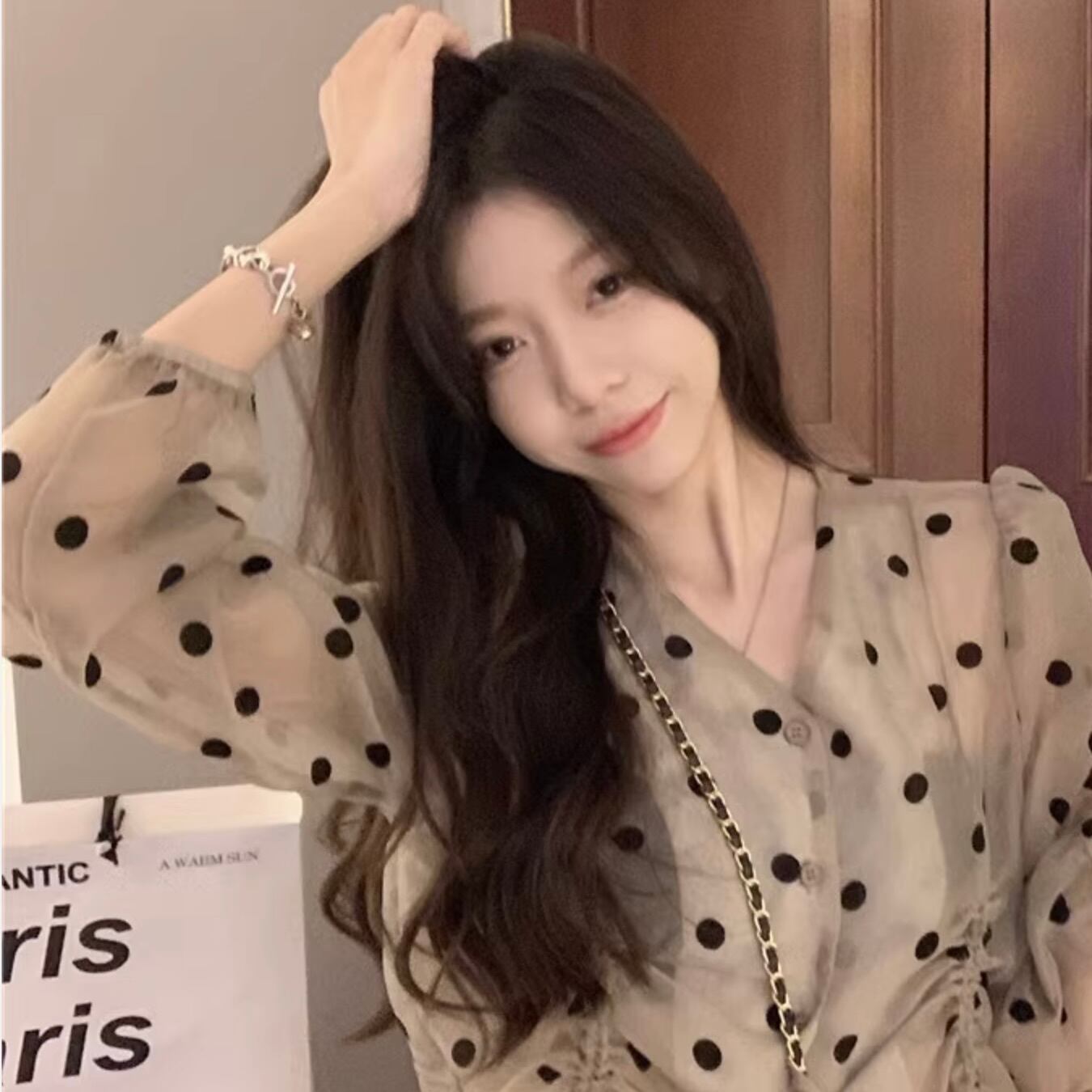 カラーシャツ トップス シャツ ブラウス 袖あり 長袖 パフスリーブ 萌袖 Vネック 襟なし リボン 透け感 シースルー かわいい 大人可愛い きれいめ シンプル カジュアル 大人 上品 おしゃれ レトロ 大人女子 こなれ感 ラブリー キュート ガーリー モード系 セクシー モダン とろみ感 抜け感 ドット柄 水玉 春 10代 20代 30代 レディース デート お出かけ 女子会 休日 着回し 普段使い 重ね着 韓国 オルチャン ファッション コーデ スタイル 体系カバー プチプラ トレンド インスタ映え