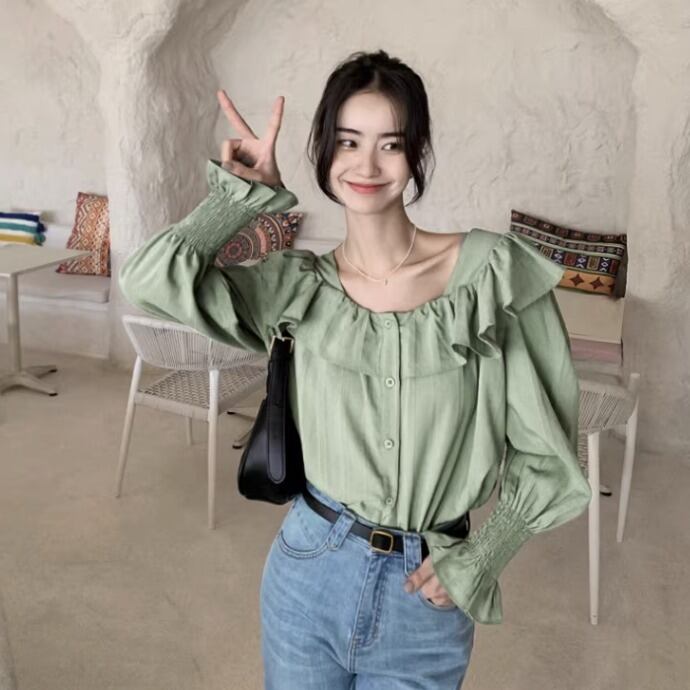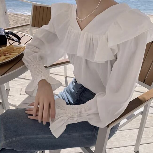 トップス シャツ ブラウス レギュラー丈 袖あり 長袖 ボリューム袖 パフスリーブ Vネック Uネック 襟なし ワイド フリル 2way コンサバ 綿 大人可愛い きれいめ シンプル カジュアル 上品 おしゃれ レトロ こなれ感 ラフ ガーリー 存在感 抜け感 休日感 ラグジュアリー 清楚 無地 春 秋 10代 20代 30代 レディース 女性用 デート お出かけ 旅行 ショッピング 合コン 着回し 普段使い 韓国系 楽ちん 体型カバー フリーサイズ ゆったり ホワイト ブラック ブルー ベージュ カーキ