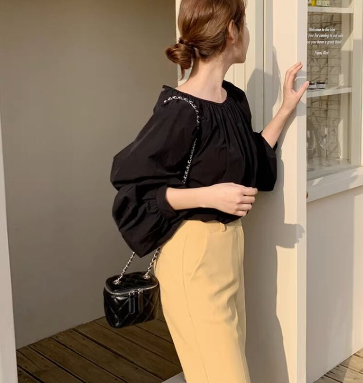 カジュアルトップスの定番、プリーツトップスです。プリーツが施されていてこなれ感もあり、大人可愛いデザインです。ラウンドネックが首元を綺麗に見せてくれます。きれいめな装いから、カジュアルな着こなしまで、幅広く合わせられるのでワードローブに一着あると便利です。