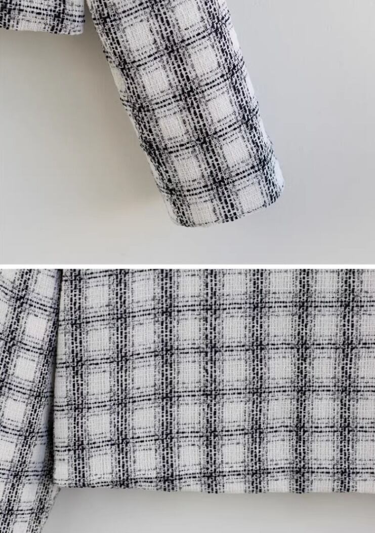 レディース ジャケット ノーカラージャケット ショート 長袖 襟なし ノーカラー ポケット 前開き コンサバ バイカラー 配色 ツイード 裏地付き 大人可愛い きれいめ カジュアル 上品 おしゃれ かっこいい レトロ こなれ感 マニッシュ モダン 存在感 フォーマル かっちり 都会的 ラグジュアリー クラシカル ハイエンド チェック 春 秋 オフィス ビジネス OL 通勤 デート お出かけ パーティー ホテル ショッピング 合コン 婚活 トレンド フリーサイズ ゆとり感 ワンサイズ ホワイト ブラック