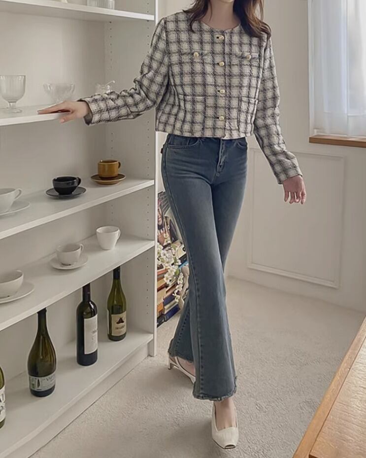 ツイードチェック柄が大人カジュアルなスタイルを格上げさせてくれるジャケット。程よく短めの丈感はきれいめな印象を与え、モタつきのない着こなしに。ノーカラーデザインでお顔周りもすっきり見え、カジュアル感をプラスしてくれます。さらりとした裏地付きだから脱着時も楽々。ビジネスシーンからデイリーまで幅広く愛用して頂けます。