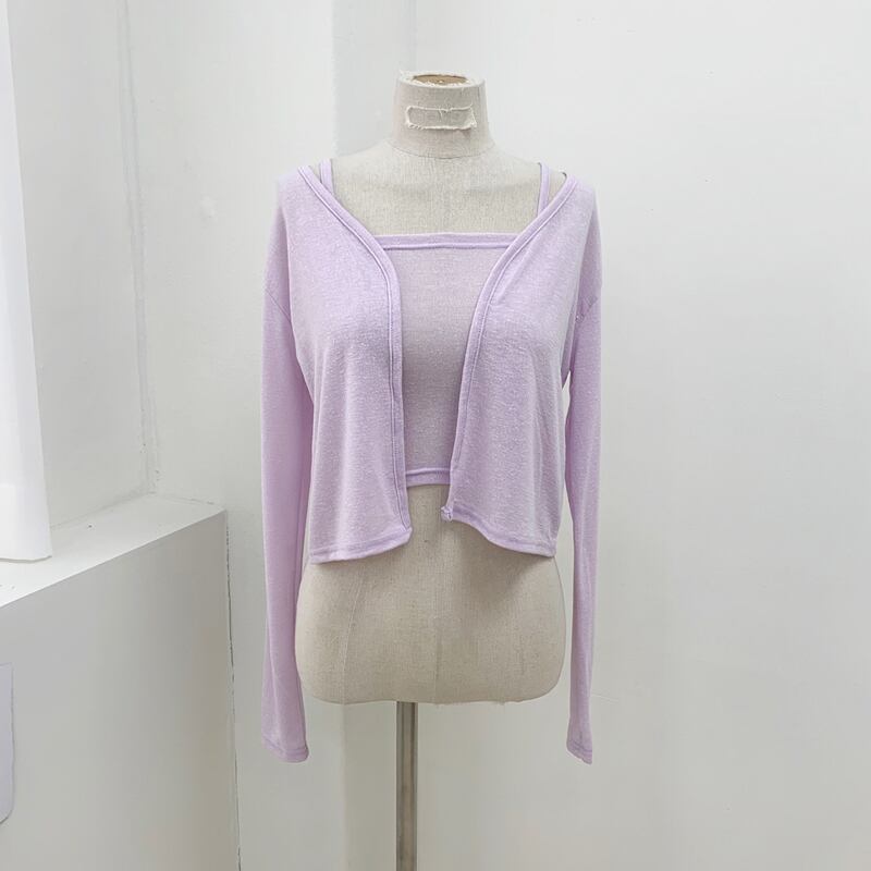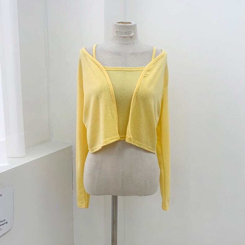 レディース トップス ニット カーディガン キャミソール アンサンブル 上着 羽織 前開き ミニ 長袖 萌袖 襟なし タイト スリム 細身 伸縮性 薄手 かわいい 大人可愛い きれいめ シンプル カジュアル 上品 おしゃれ ガーリー ルーズ ベーシック 無地 オールシーズン オフィス ビジネス OL 通勤 学生 学校 通学 デート お出かけ 女子会 休日 ショッピング コンサート ライブ お花見 合コン コンパ 婚活 楽ちん 普段使い 着回し フリーサイズ 白 ホワイト 紫 黄色 イエロー