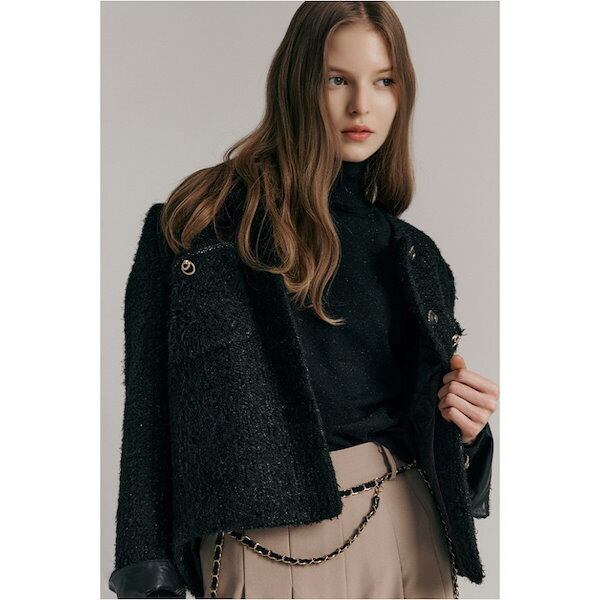 ツイードジャケットの上品な雰囲気が、あなたをより女性らしく魅せます。