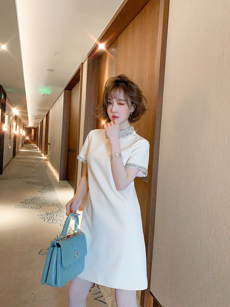 レディース ビジュー ワンピース ドレス シャツワンピ ショートスカート フレアスカート ミニスカート 半袖 襟付き 細身 ファスナー 薄手 かわいい 大人可愛い カジュアル 上品 おしゃれ ガーリー エレガント ラブリー キュート ロマンティック 無地 オールシーズン 謝恩会 結婚式 二次会 デート お出かけ パーティー イベント レストラン ホテル ショッピング 発表会 合コン コンパ カフェ 婚活 美脚 脚長 モテ 清楚 XS S M L XL 2XL 3XL 黒 ブラック ベージュ