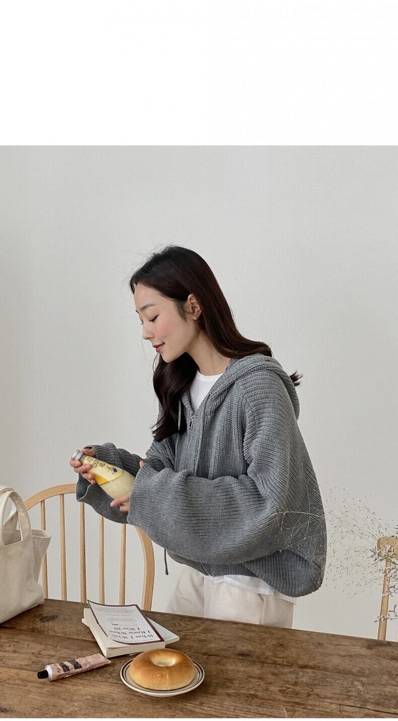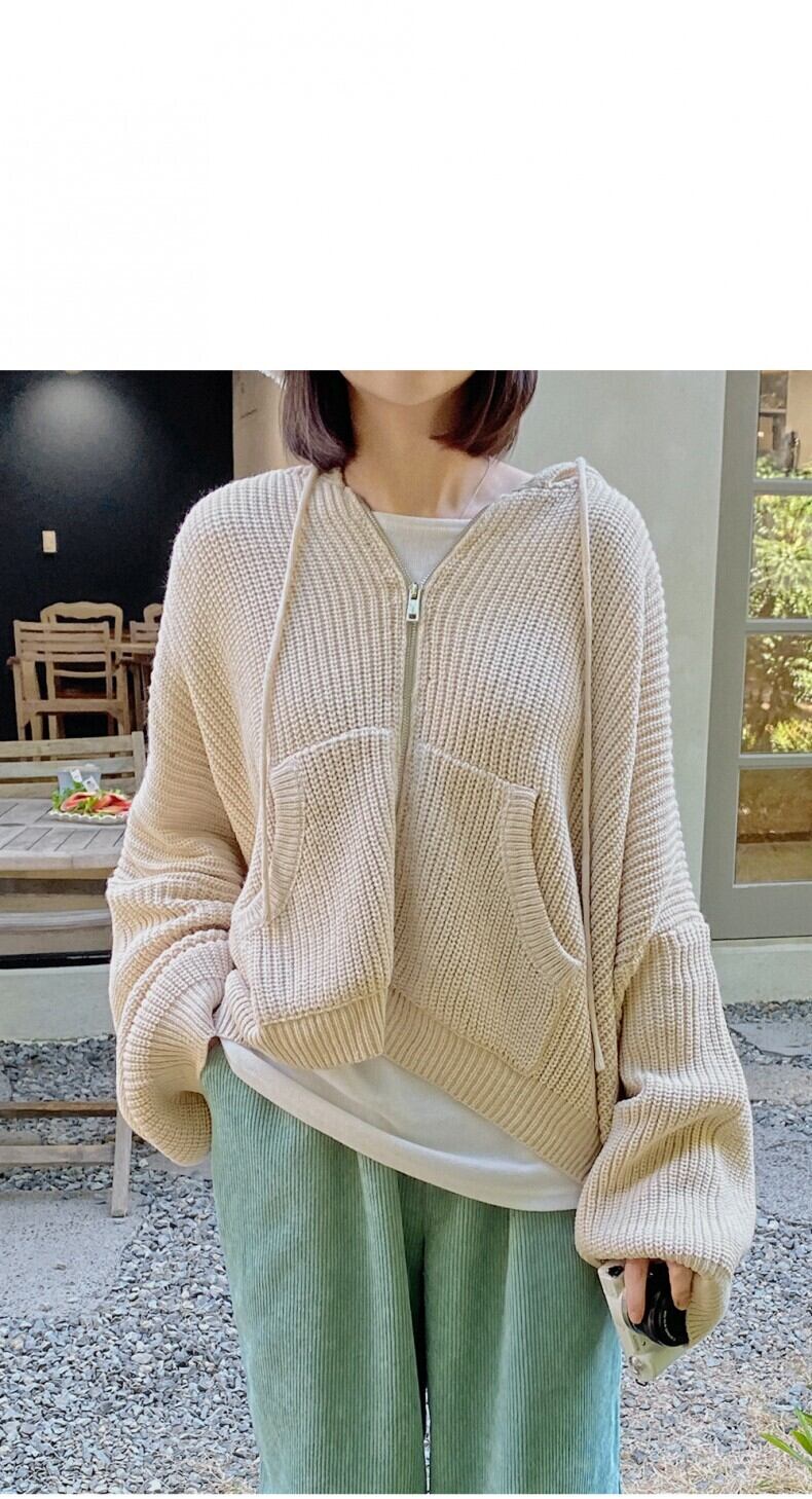 ボリュームのある袖とドロップショルダーがポイントの、大人可愛いニットパーカー♪