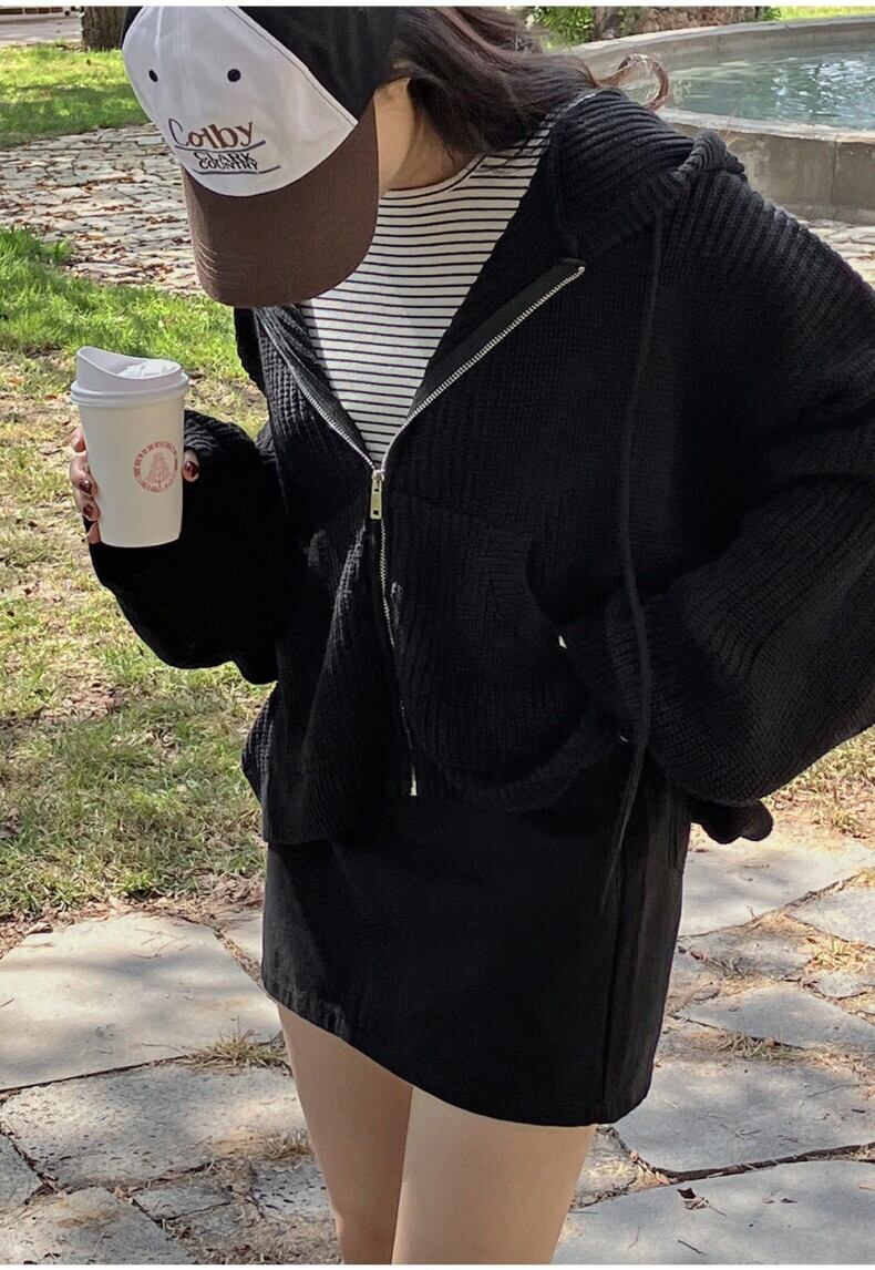 レディース トップス ニット カーディガン パーカー 部屋着 アウター 上着 羽織 ロング 長袖 ボリューム袖 ドロップショルダー Vネック フード ファスナー ポケット 厚手 大人可愛い シンプル カジュアル かっこいい メンズライク マニッシュ ボーイッシュ スポーティー ルーズ とろみ感 学生風 ベーシック アメリカン アクティブ 無地 オールシーズン 学生 学校 通学 部活 お泊まり アウトドア キャンプ 公園 重ね着 体型カバー 普段使い 着回し ゆったり ゆる フリーサイズ 黒 ブラック グレ