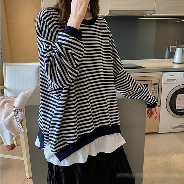 レディース ロンT プルオーバー Tシャツ 長袖 ドルマンスリーブ ドロップショルダー ラウンドネック 襟なし サイドスリット 薄手 かわいい 大人可愛い カジュアル ラフ ガーリー ボーダー オールシーズン マタニティ 学生 学校 通学 お出かけ お泊まり アウトドア リゾート 旅行 レストラン 女子会 休日 ショッピング コンサート ライブ お花見 合コン コンパ カフェ 体型カバー 普段使い 着回し M L XL 2XL 3XL 4XL ゆったり ゆる 黄色 イエロー ピンク ブルー バイカラー