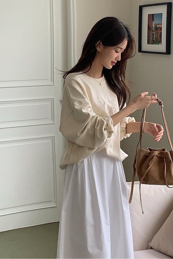 ドロップショルダーと萌袖が可愛い、大人可愛いトレーナーです♪