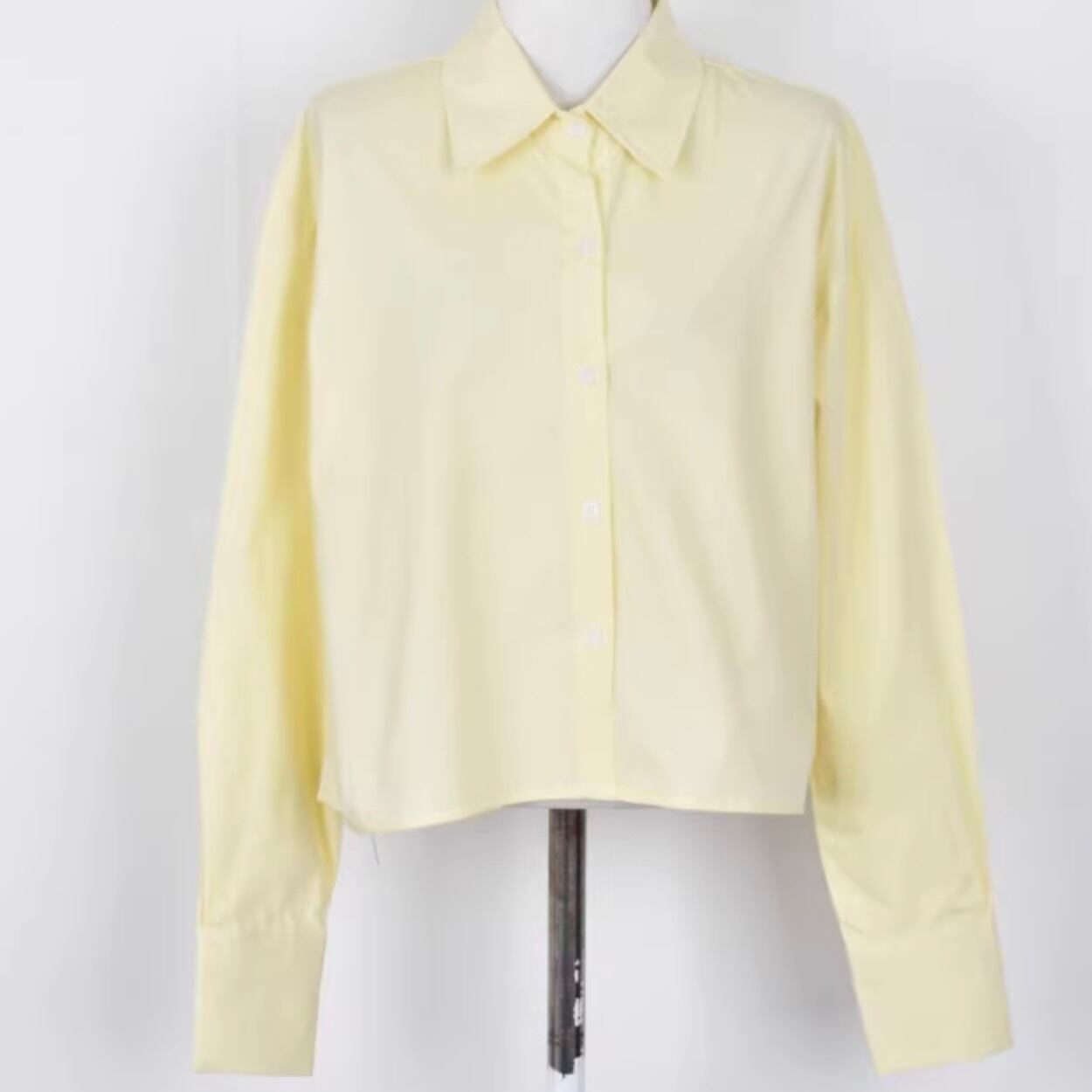 シンプルながら、トレンド感満載の短め丈が特徴的なシャツ。