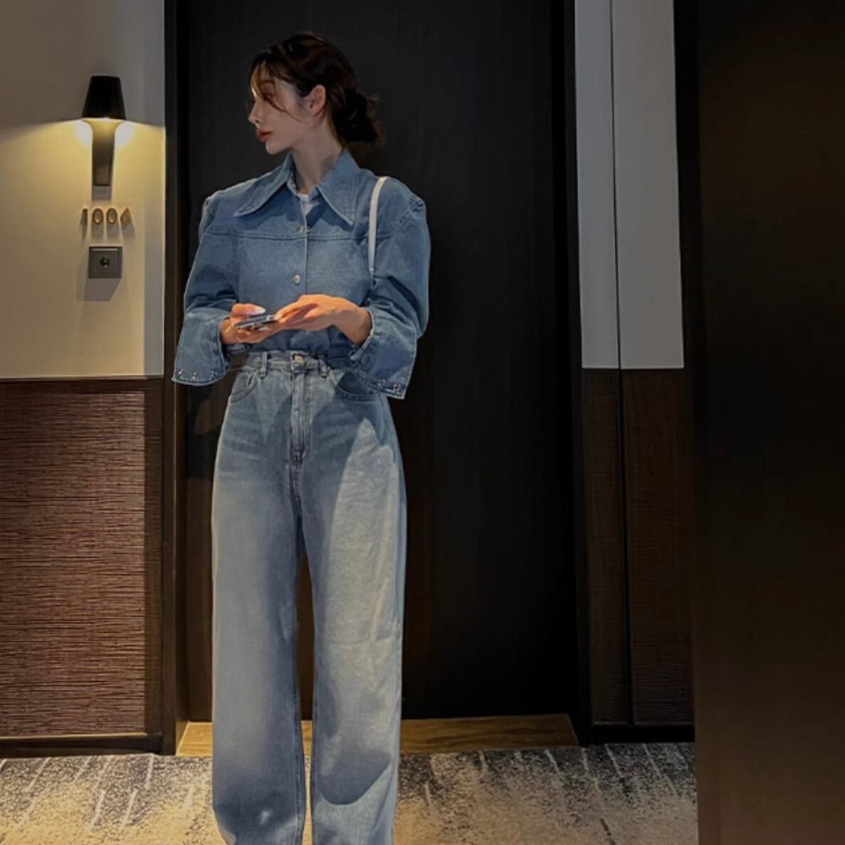 デニムオンデニムでコーデするとトレンド感高めでおしゃれです。