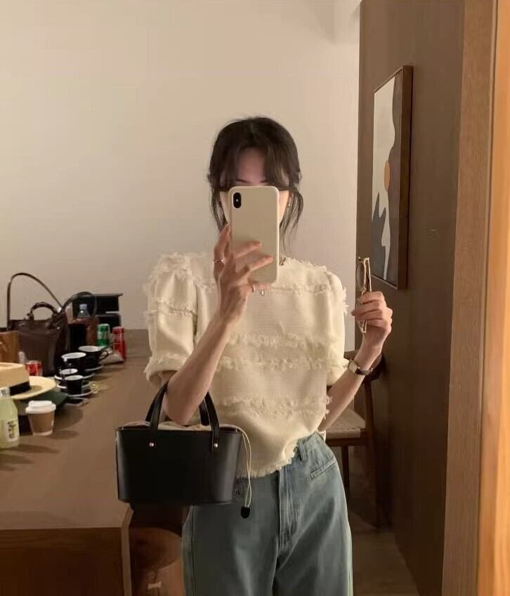 個性溢れるレディーストップスが、夏のスタイルに新たな魅力をプラスします。異素材ミックスとフリンジのディテールが目を引く半袖トップスは、襟なしのシンプルなデザインが特徴です。かわいさとカジュアルさ、そしてかっこよさを兼ね備えたこなれ感とラフなルーズシルエットが、個性的でクールなモード系スタイルを演出します。