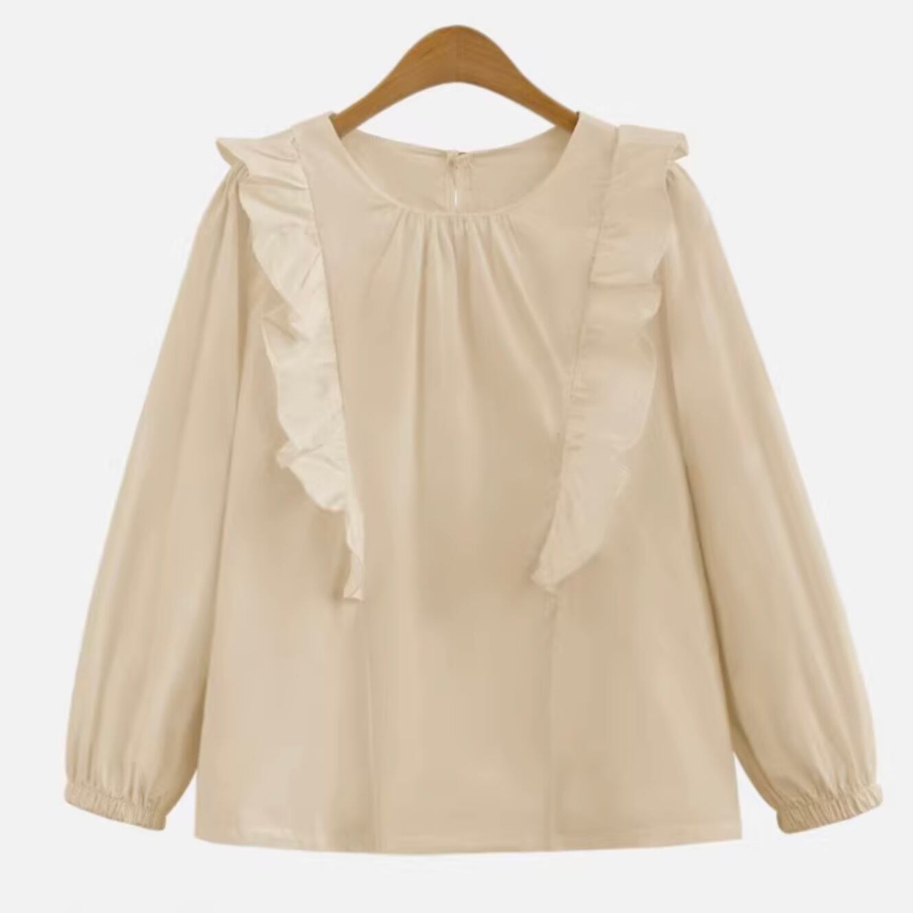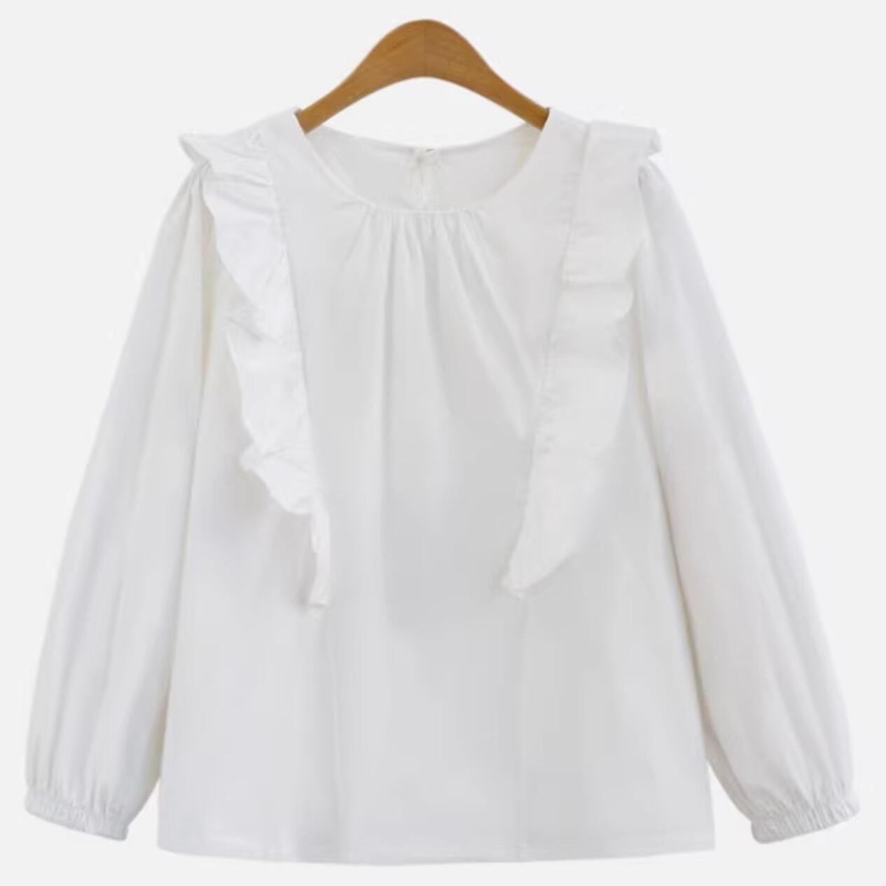 ボリューム感のあるフリルデザインがフェミニンな印象のブラウス。