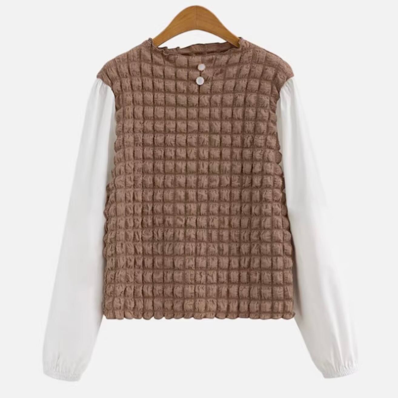 トップス ブラウス カットソー 袖あり 長袖 パフスリーブ 萌袖 Uネック ラウンドネック クルーネック 襟なし シフォン 切り替えデザイン ドッキング かわいい 大人可愛い きれいめ シンプル カジュアル 大人 上品 おしゃれ レトロ 大人女子 こなれ感 ラブリー キュート ガーリー 個性的 エレガント 抜け感 無地 春 10代 20代 30代 レディース デート お出かけ 女子会 着回し 普段使い 韓国 オルチャン ファッション コーデ スタイル 楽ちん 体系カバー プチプラ トレンド インスタ映え