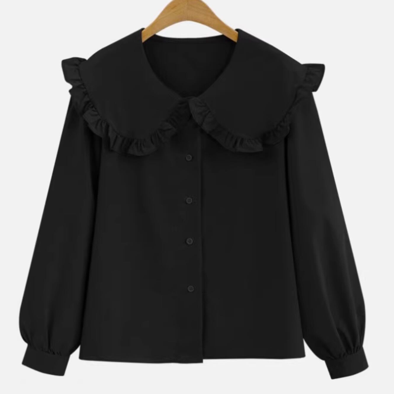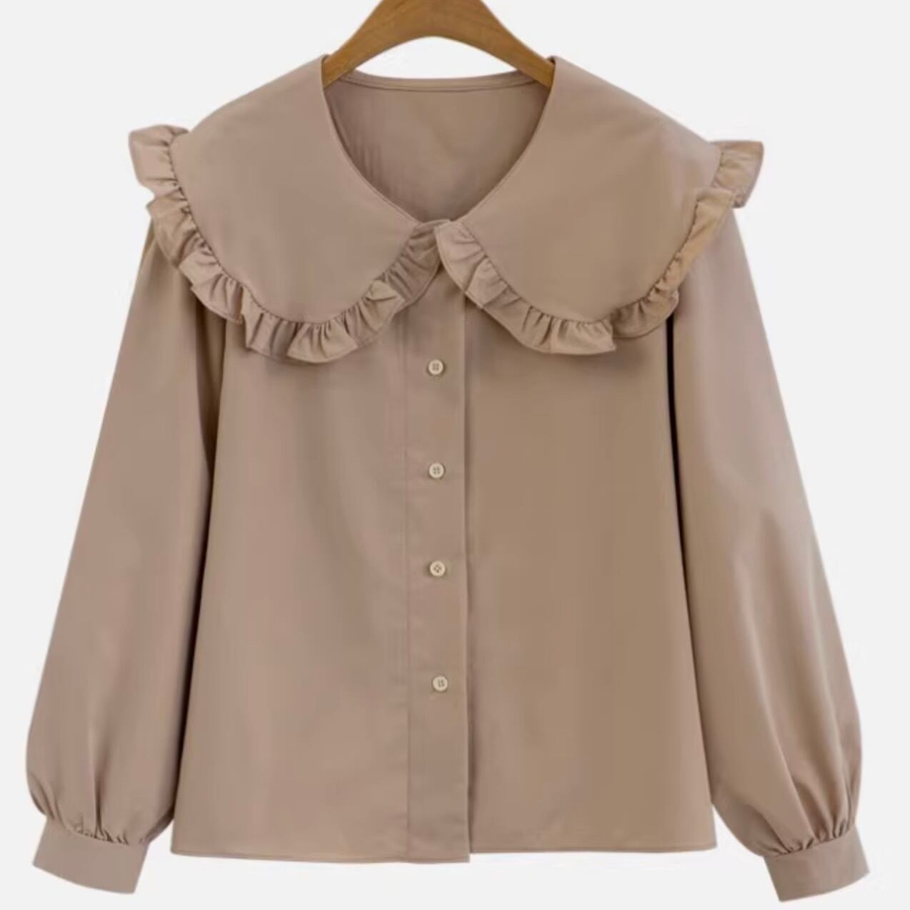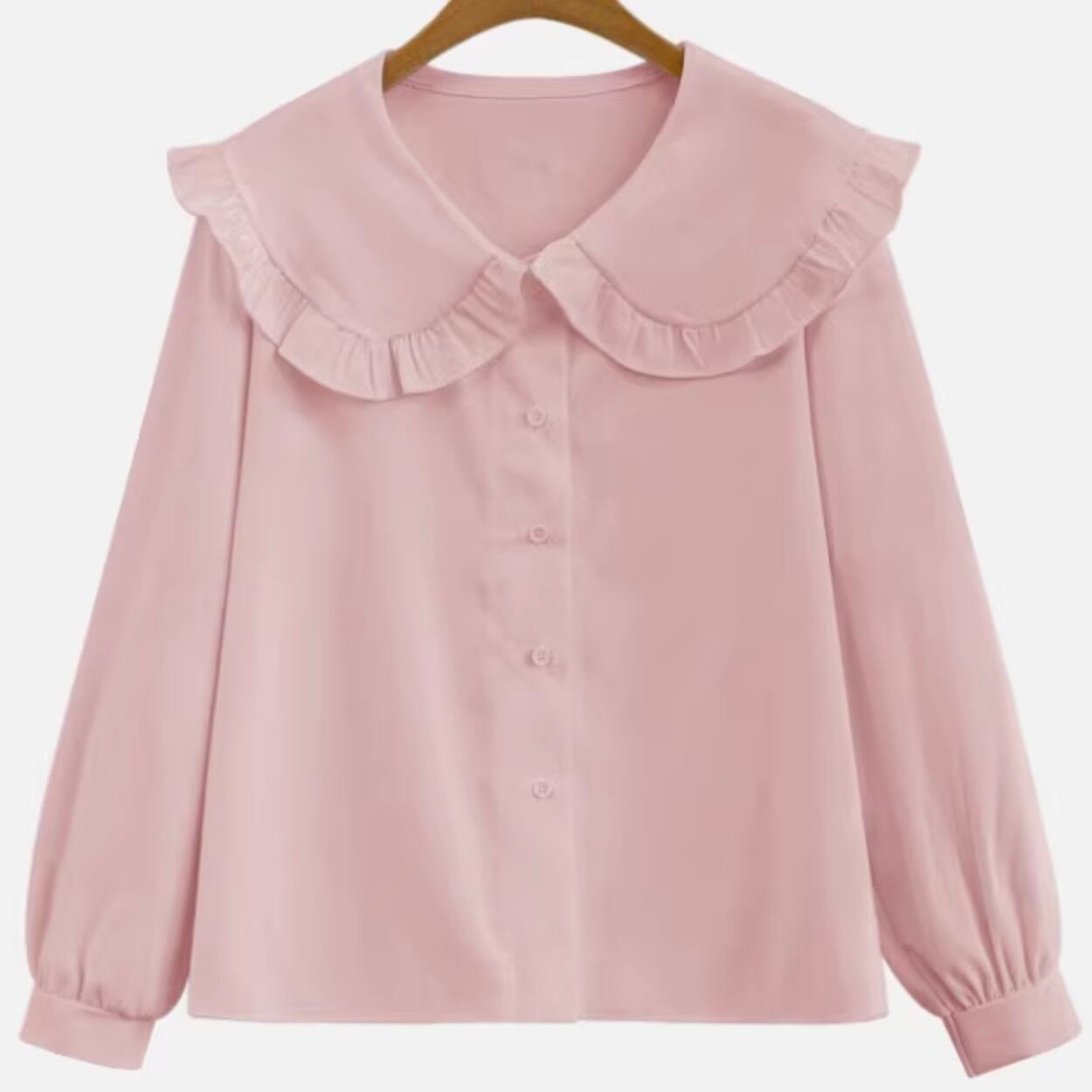 トップス シャツ ブラウス 袖あり 長袖 萌袖 襟付き フリル 前開き かわいい 大人可愛い きれいめ シンプル カジュアル 大人 上品 おしゃれ レトロ 大人女子 こなれ感 ラフ ラブリー キュート ガーリー ルーズ 個性的 モード系 エレガント モダン 抜け感 無地 春 秋 10代 20代 30代 レディース 女性用 デート お出かけ 女子会 休日 着回し 普段使い 重ね着 韓国 オルチャン ファッション コーデ スタイル 楽ちん モテ プチプラ トレンド インスタ映え パステルカラー 大人カラー