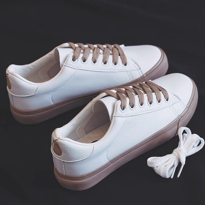 白地にピンクorカーキの紐・ソールがアクセントになっておしゃれです♪