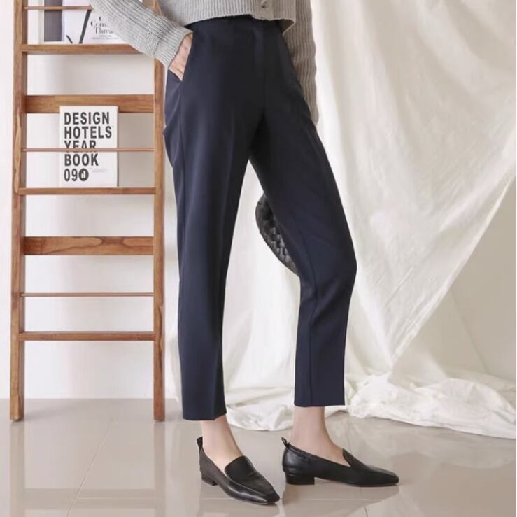 フォーマルな雰囲気漂うスラックスパンツは、絶妙な丈の長さが上品さをプラスしてくれます。センタープレス仕様できちんと感を引き出し、コンサバティブな雰囲気やきれいめな印象を与えます。ストレッチ素材だから屈んだりした際の動きなどをサポート! カジュアルMIXのコーデにもぴったりなシンプルパンツは着回し力抜群です。