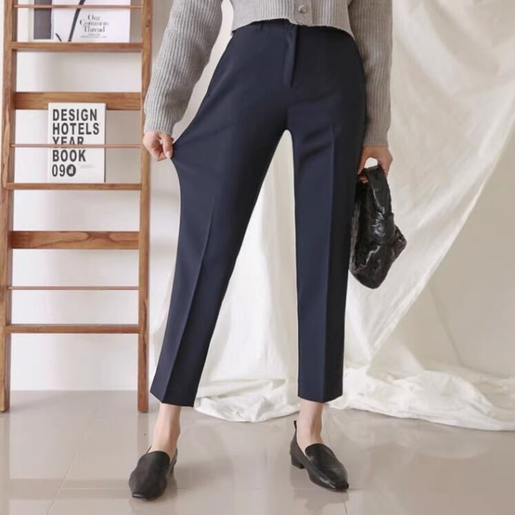 パンツ ストレートパンツ スラックス クロップドパンツ 9分丈 クロップド丈 ストレート センタープレス ファスナー ポケット 前開き コンサバ ストレッチ 伸縮性 きれいめ シンプル カジュアル 上品 かっこいい レトロ こなれ感 ラフ メンズライク マニッシュ クール フォーマル 抜け感 かっちり 都会的 ラグジュアリー 無地 春 夏 秋 オフィス ビジネス OL 通勤 パーティー レストラン ホテル 合コン 普段使い 着回し 清楚 トレンド 定番 S M L XL ゆとり感 ブラック ネイビー