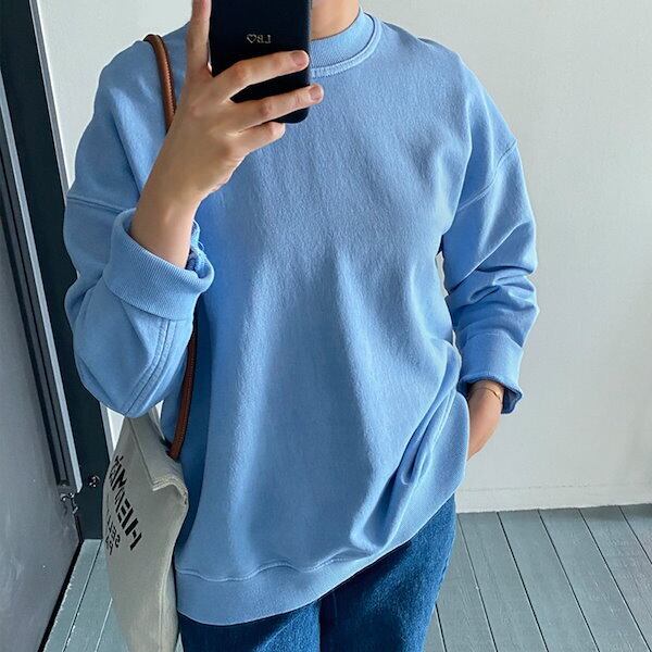 レディース トップス ロンT プルオーバー トレーナー 部屋着 寝巻き 長袖 ドロップショルダー ラウンドネック ワイド 薄手 伸縮性 シンプル カジュアル ラフ メンズライク ボーイッシュ スポーティー クール 無地 オールシーズン 学生 学校 通学 部活 お出かけ お泊まり アウトドア キャンプ イベント 旅行 公園 休日 高原 ガーデン ショッピング コンサート ライブ カフェ 重ね着 楽ちん 暖かい 防寒 体型カバー 普段使い 着回し 定番 ゆったり ゆる フリーサイズ ブルー