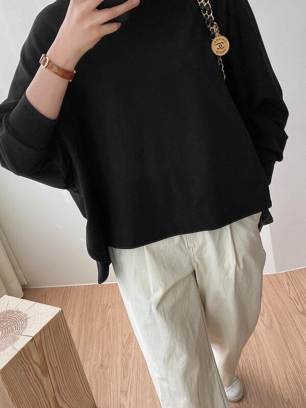 ドルマンスリーブでかなりゆったりとしたシルエットのトレーナーです。体型カバーにも◎