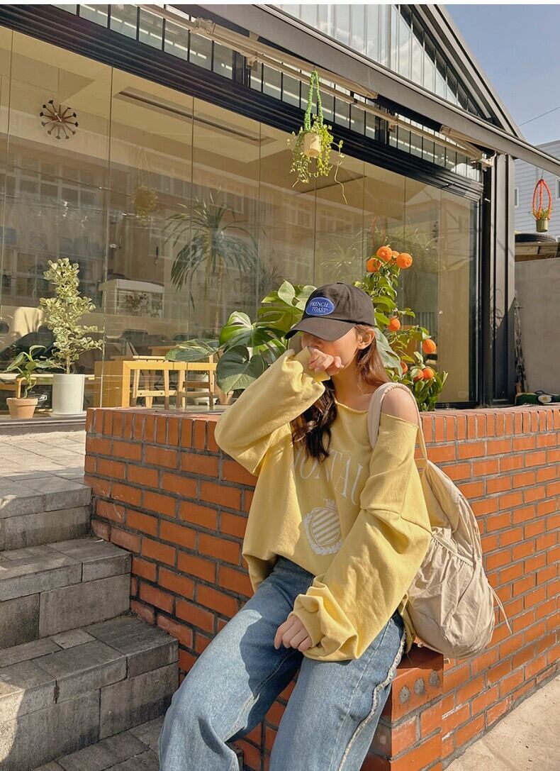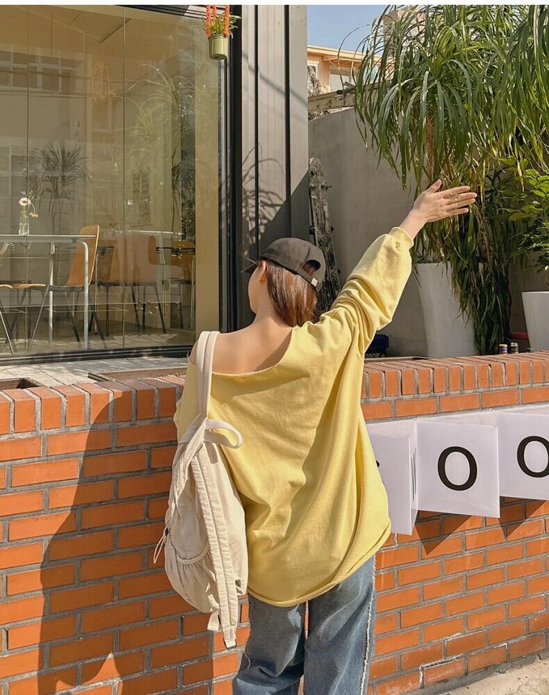 レディース トップス プルオーバー トレーナー 長袖 ドロップショルダー 萌袖 オフショルダー ワイド 伸縮性 薄手 スウェット シンプル カジュアル レトロ こなれ感 ラフ メンズライク ボーイッシュ ベーシック 無地 プリント ロゴ オールシーズン ママ マタニティ 学生 学校 通学 お出かけ お泊まり アウトドア キャンプ 女子会 休日 ショッピング ライブ フェス 楽ちん 体型カバー 普段使い 着回し 定番 ゆったり ゆる フリーサイズ 白 ホワイト 黄色 イエロー ネイビー