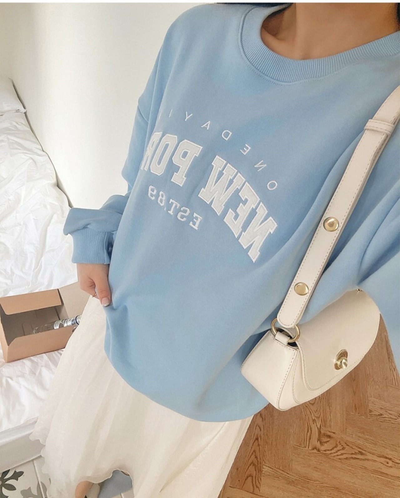 レディース トップス プルオーバー トレーナー 長袖 ドロップショルダー 萌袖 ラウンドネック ワイド 刺繍 伸縮性 薄手 スウェット シンプル カジュアル レトロ こなれ感 ラフ メンズライク ボーイッシュ ベーシック 無地 ロゴ オールシーズン ママ マタニティ 学生 学校 通学 お出かけ お泊まり アウトドア キャンプ 公園 女子会 休日 高原 ショッピング ライブ フェス 楽ちん 体型カバー 普段使い 着回し 定番 ゆったり ゆる フリーサイズ 白 ホワイト オフホワイト ブルー
