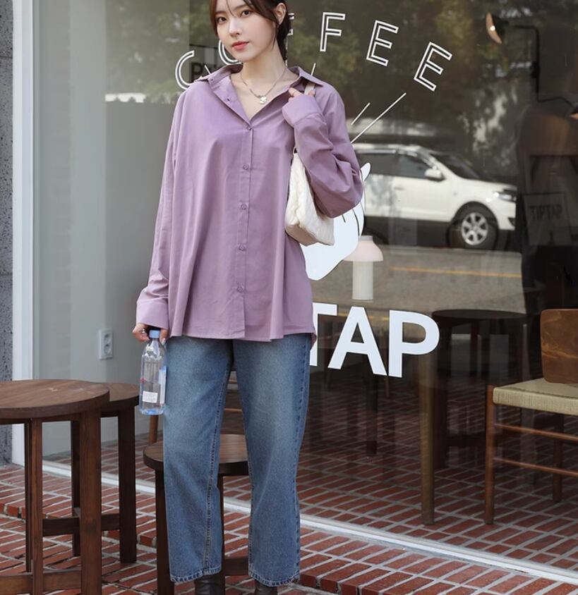 ベーシック レディース トップス シャツ ブラウス カットソー 長袖 襟付き 角襟 ストレート 前開き ボタン 大人可愛い きれいめ シンプル カジュアル かっこいい レトロ こなれ感 ラフ メンズライク マニッシュ クラシカル カレッジ風 学生風 無地 春 秋 ママ オフィス ビジネス OL 通勤 学生 学校 通学 デート お出かけ お泊まり キャンプ リゾート 旅行 公園 女子会 休日 ガーデン ショッピング 重ね着 普段使い 着回し フリーサイズ ベージュ ブルー ライトブルー パープル