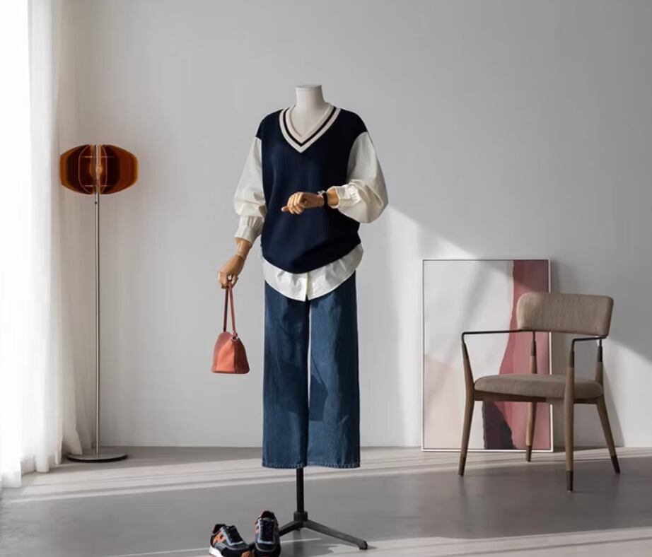 レイヤードシャツ スカイブルー クリーム ネイビー レディース トップス プルオーバー 丈長 長袖 Vネック ストレート ドッキング 切り替えデザイン 配色 かわいい 大人可愛い きれいめ シンプル 上品 おしゃれ かっこいい レトロ こなれ感 都会的 クラシカル カレッジ風 学生風 ベーシック オフィス ビジネス OL 通勤 学生 学校 通学 デート お出かけ お泊まり イベント リゾート 旅行 レストラン 公園 女子会 休日 ホテル ガーデン ショッピング インスタ映え S M フリーサイズ