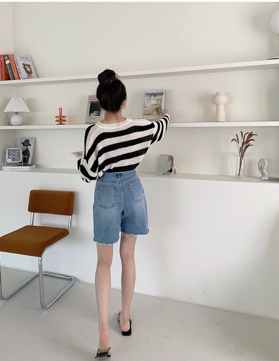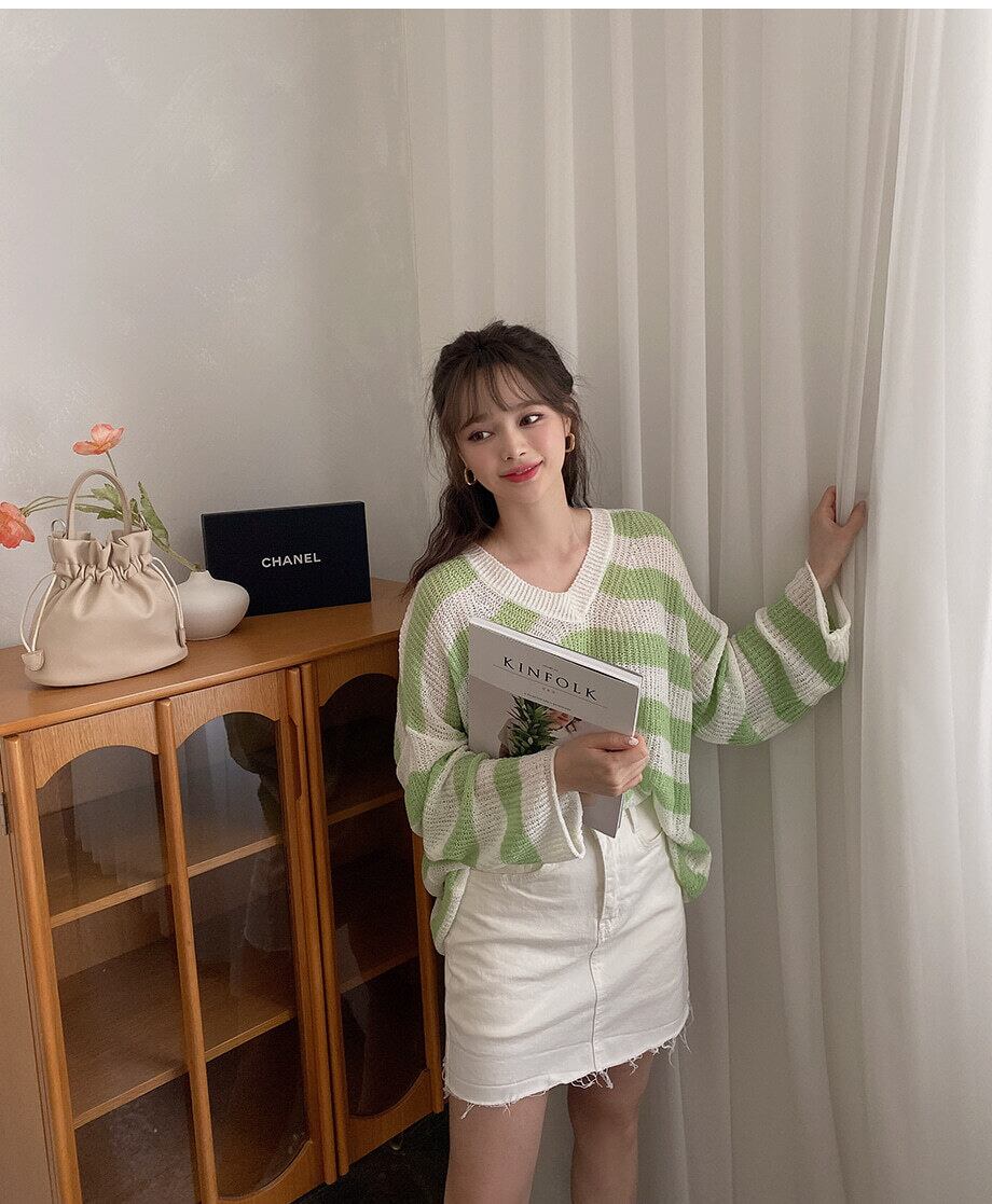 ざっくりとした編地のボーダーが可愛い、サマーニットトップスです☆