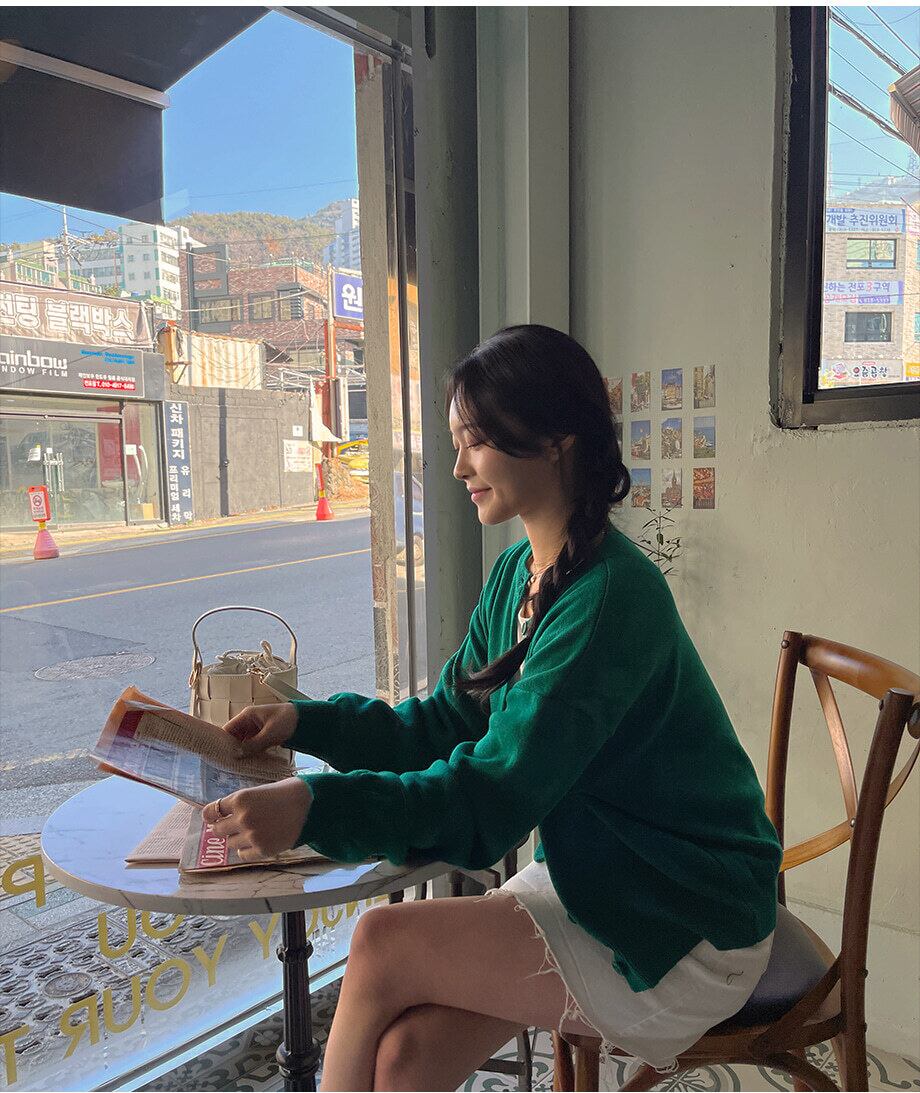 ドロップショルダーでゆったりとしたシルエットが女性らしいカーディガンです♪