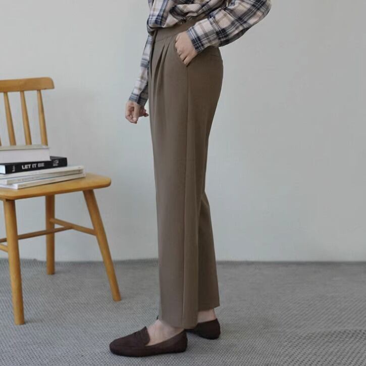 きれいめで上品な雰囲気が漂う、きちんと感にラフさをプラスしたようなデザインに仕上げたテーパードパンツ。タック入りでマニッシュな印象に。ルーズなシルエットや抜け感がプラスされこなれ感を感じさせてくれるスタイリングに◎ オフィスやビジネスシーン、カジュアルな着こなしや普段使いにも活躍します。清楚な印象やトレンド感も演出できる1枚、ワードロープに加えてみませんか?