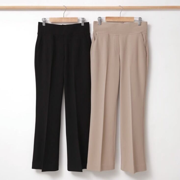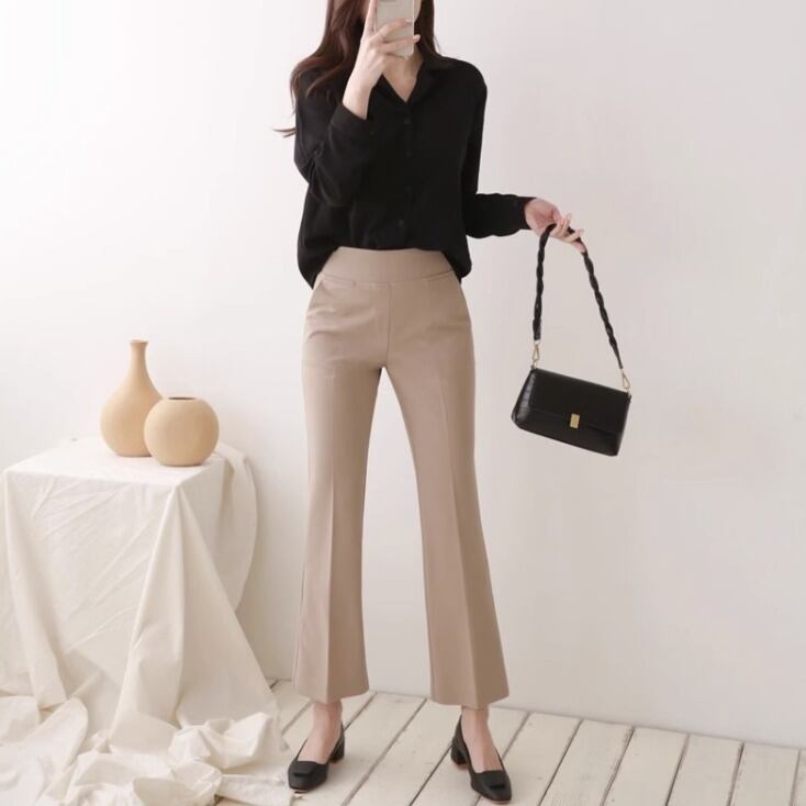 レディース パンツ ボトムス ロングパンツ ブーツカットパンツ ロング 9分丈 スリム 裾ワイド ブーツカット センタープレス ハイウエスト ウエストゴム ストレッチ 伸縮性 柔らか きれいめ シンプル カジュアル 上品 おしゃれ かっこいい レトロ こなれ感 ラフ マニッシュ フォーマル 抜け感 かっちり 都会的 ラグジュアリー アクティブ 無地 春 秋 オフィス ビジネス OL 通勤 お出かけ パーティー レストラン ホテル ショッピング 合コン 楽ちん 普段使い 着回し 定番 ブラック ベージュ