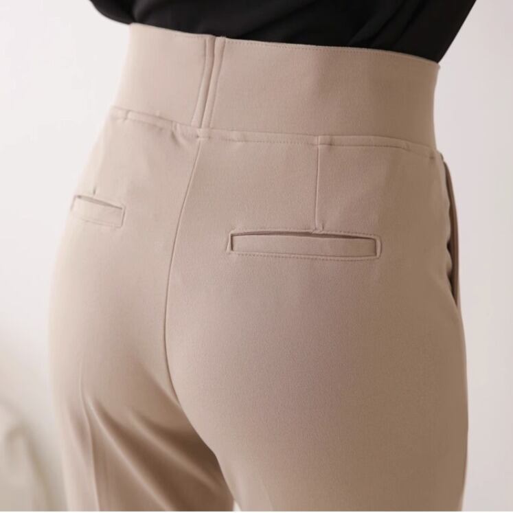 フォーマルライクで上品さ漂うロングパンツは、ストレッチ性抜群でとっても動きやすい!ウェスト部分は太めのゴム仕様になっていて、しっかりウェストまわりにフィット。太めのゴムだから、お腹周りのお肉もしっかり支えてくれます◎ こんなに動きやすく、さらにはマニッシュな雰囲気からカジュアルコーデまで幅広くマッチする1枚だから着回し力も抜群です!