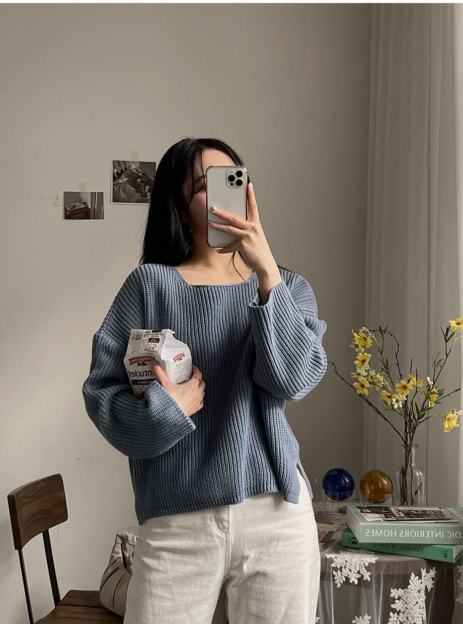こちらのVネックニットは、中厚手で暖かい生地を使用しているので、秋冬にぴったりです☆