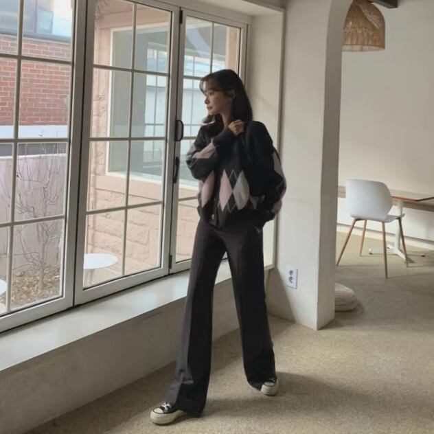 L /ウェスト 35.5 /ヒップ 44 /太もも周り 27.5 /股上 28.5 /裾幅 27 /着丈 102