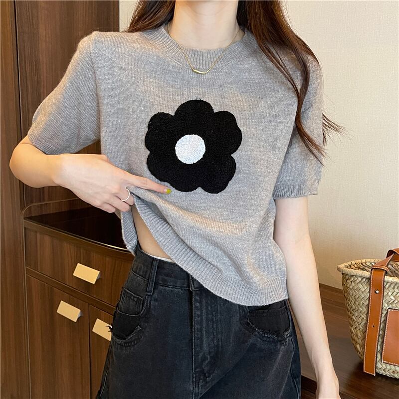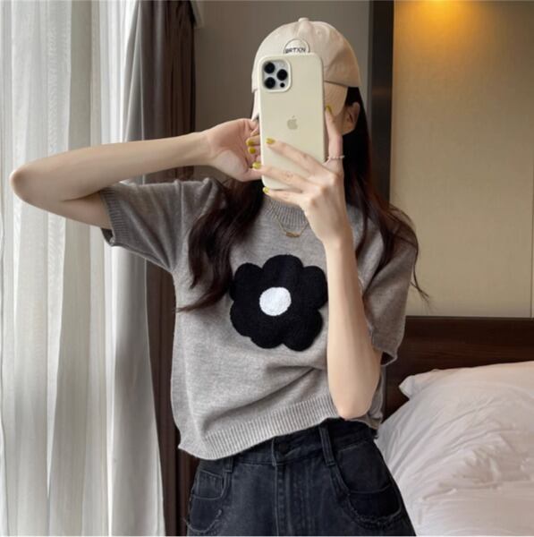大人可愛い花ワンポイントのニットソーです♪