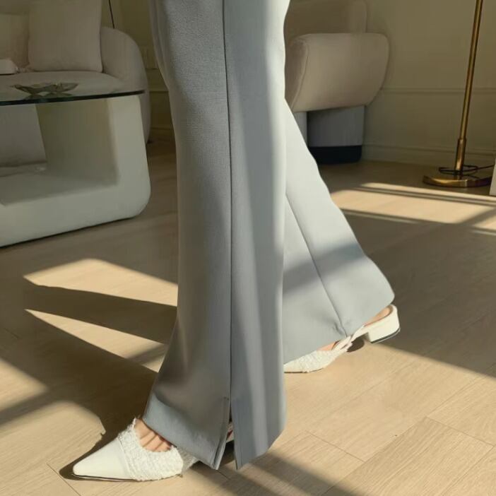 レディース パンツ ボトムス ロングパンツ ブーツカットパンツ ロング フルレングス 裾ワイド ブーツカット スリット サイドスリット ファスナー ポケット 前開き コンサバ きれいめ シンプル カジュアル 上品 おしゃれ かっこいい レトロ こなれ感 ラフ フォーマル かっちり 都会的 ラグジュアリー ハイエンド 無地 春 秋 会議 オフィス ビジネス OL 通勤 パーティー レストラン 休日 ホテル ショッピング 合コン 婚活 楽ちん 美脚 普段使い 着回し ゆとり感 ホワイト ブラック 水色 ブルー