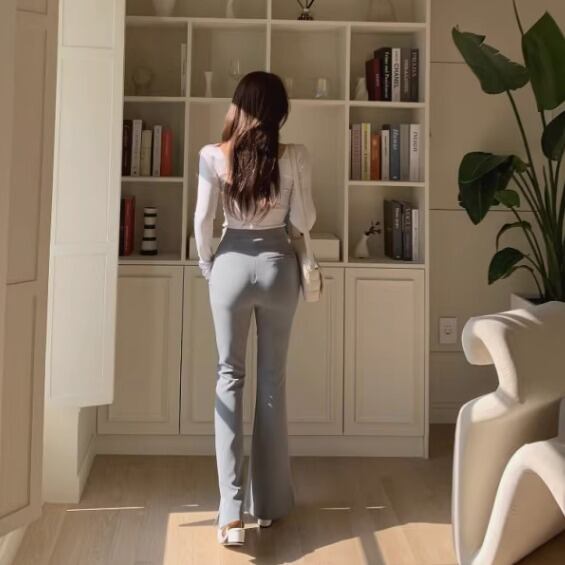 洗練された女性らしさを引き立てるブーツカットのシルエットは、美脚効果を高め、さらにはサイドスリットが施され、動きやすさと抜け感をプラスしています。コンサバティブな雰囲気を持ちながら上品さ、かっこよさを兼ね備えたデザイン。ビジネスシーンからデイリーまで幅広くご着用いただけます◎