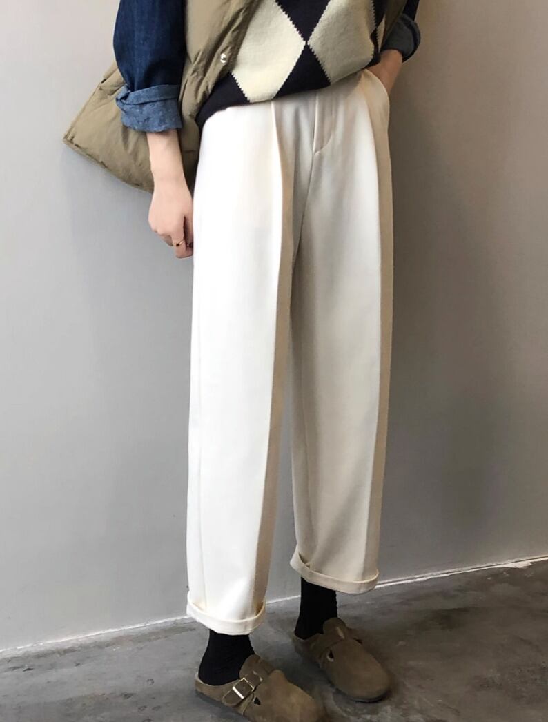 パンツ ボトムス ストレートパンツ ロングパンツ ワイドパンツ ロング 9分丈 クロップド丈 ワイド ストレート オーバーサイズ ポケット ウエストゴム シンプル カジュアル おしゃれ かっこいい レトロ こなれ感 ラフ メンズライク ボーイッシュ ルーズ 個性的 モード系 抜け感 カレッジ風 アクティブ 休日感 ジェンダーレス 無地 秋 冬 オフィス 学生 学校 お出かけ アウトドア 旅行 休日 ショッピング 楽ちん 体型カバー 普段使い 着回し トレンド ゆったり 暖か ホワイト ベーシックカラー