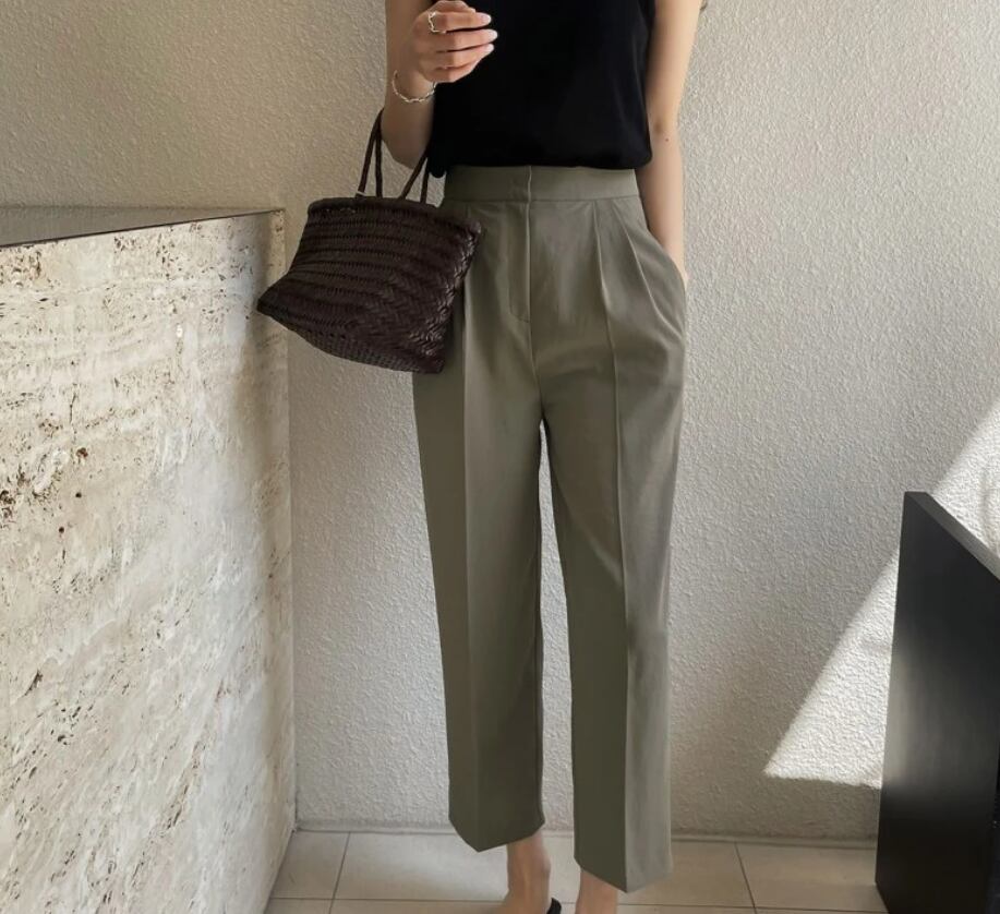 ハイウエストデザインで脚長効果もバッチリ。また、薄い生地感が夏の装いにもぴったり!涼やかな穿き心地が心地よく、オフィスからお出かけまで、様々なシーンでお使いいただけます。