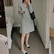 レディース セットアップ ノーカラーコート ジャンプスーツ ミモレ 長袖 スクエアネック Aライン リボン ファスナー ハイウエスト かわいい 大人可愛い きれいめ シンプル カジュアル 上品 おしゃれ ガーリー エレガント フォーマル クラシカル ナチュラル ツイード柄 春 夏 秋 入学式 入園式 謝恩会 発表会 ママ OL 通勤 デート お出かけ パーティー イベント 女子会 韓国 コーデ 体型カバー モテ 清楚 XS S M L XL 2XL 3XL 4XL 大きいサイズ グレー ライトグレー