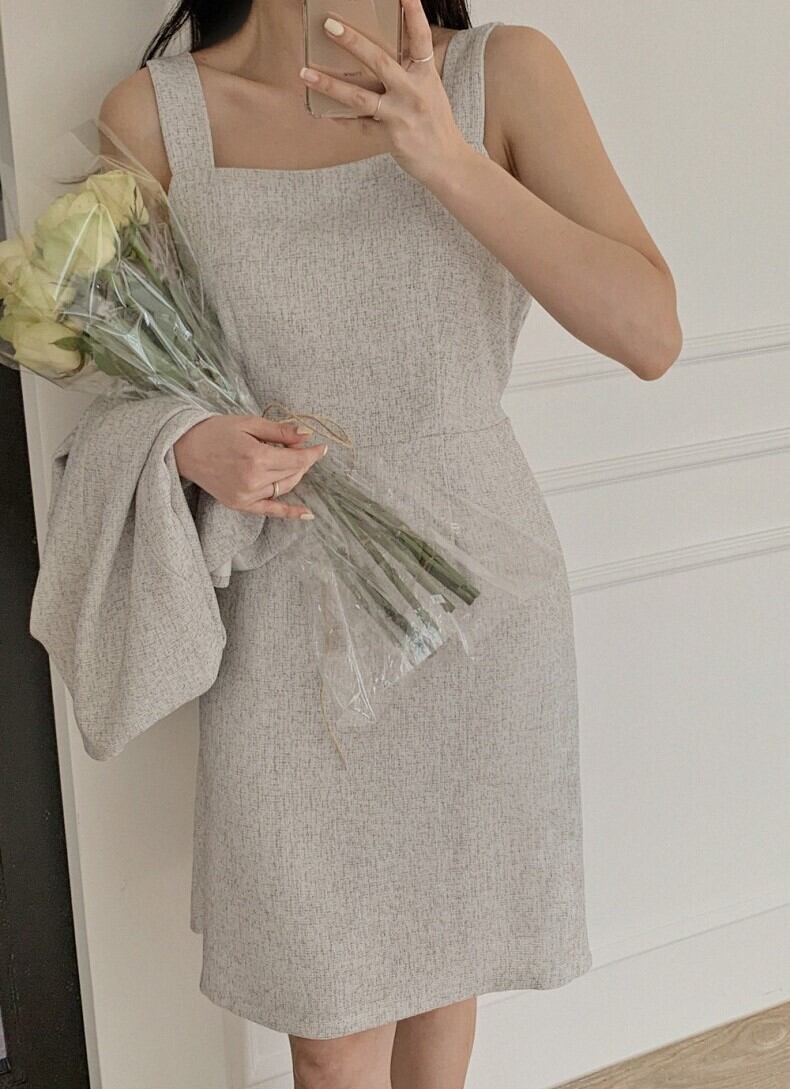 スクエアネックで鎖骨ラインが強調され、ノースリーブタイプで様々なトップスと合わせやすい着回しの力のあるワンピース。