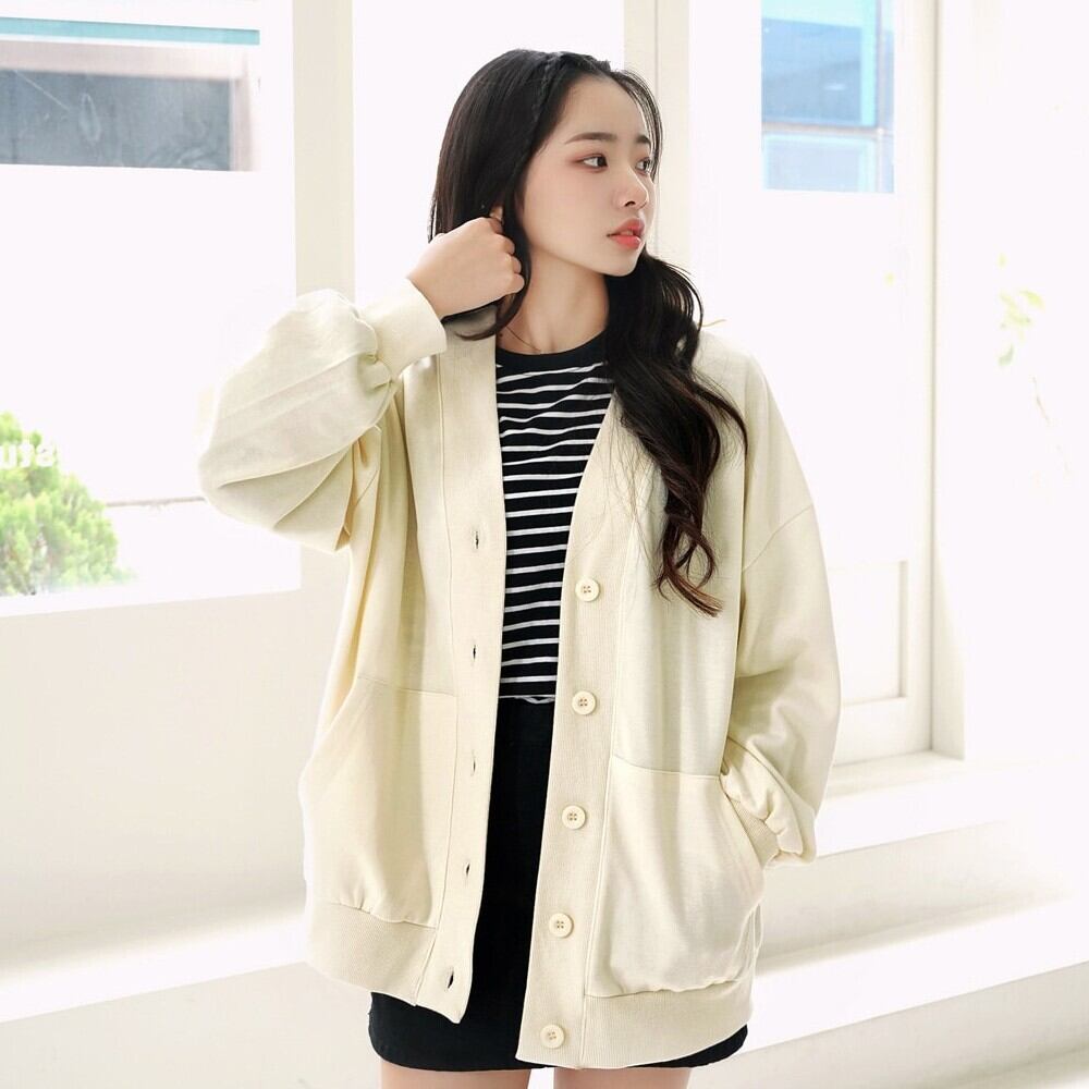 こちらのカーディガンは上品な無地デザインで、どんなコーディネートにも合わせやすい万能アイテムです!