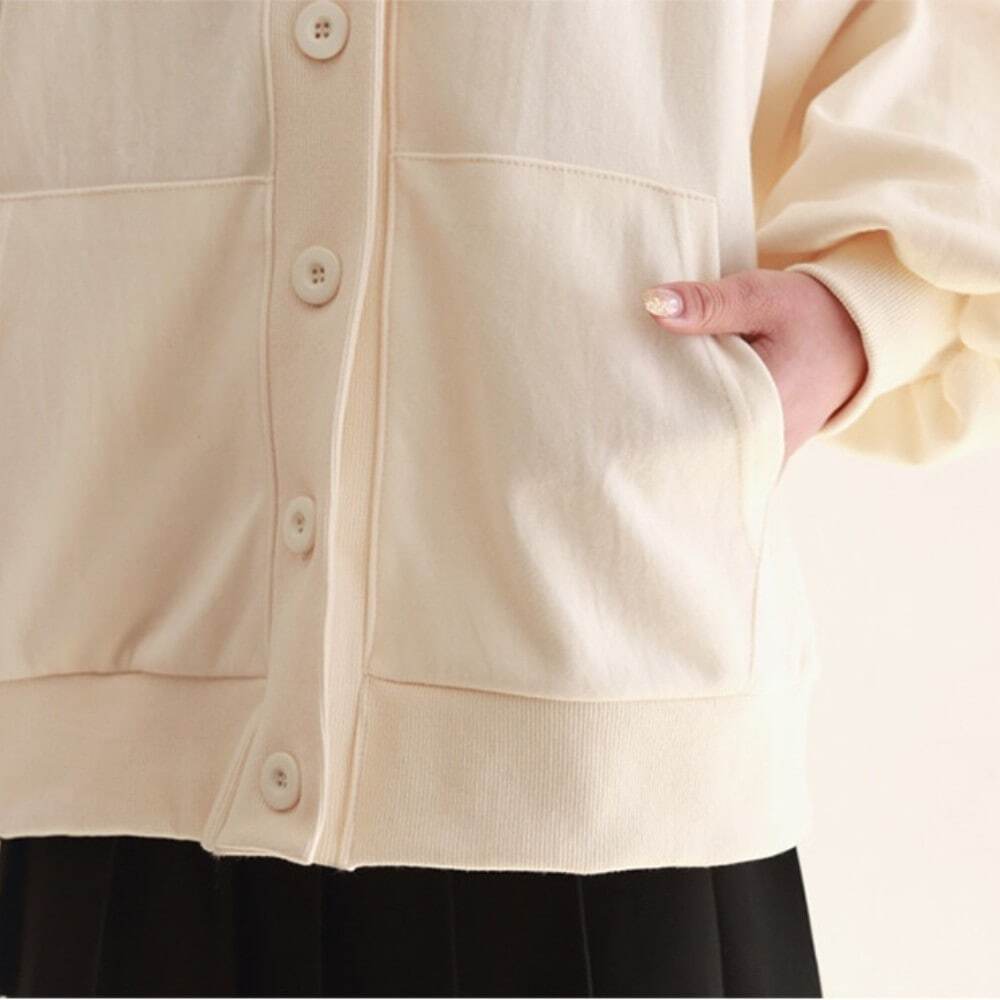 前開きなので、羽織りとしても使いやすく、季節の変わり目にも活躍します!