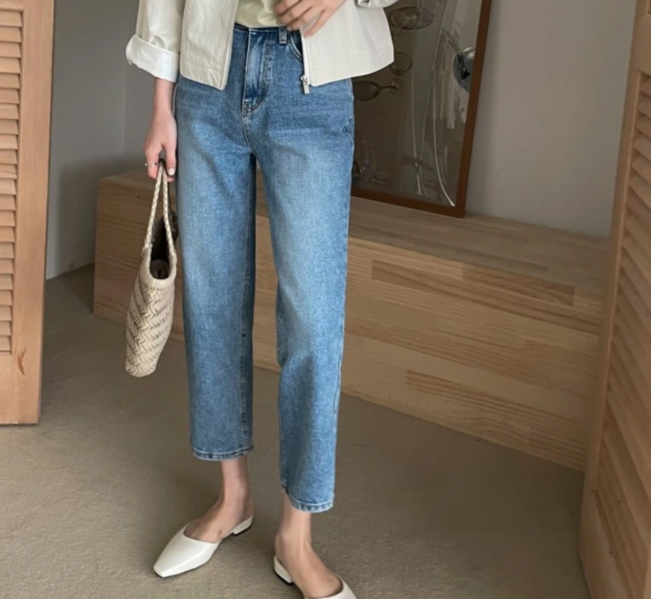 シンプルながらも存在感のある一枚、クロップドデニムパンツ。