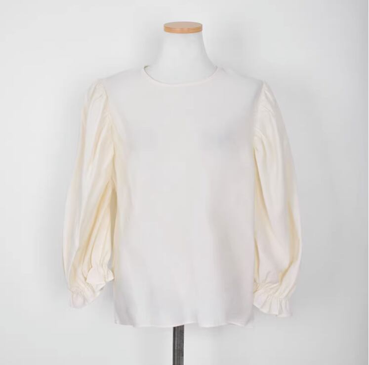 春秋カジュアルシャツ ボリューム袖トップス レディース シャツ カットソー プルオーバー 長袖 ボリューム袖 パフスリーブ Uネック ラウンドネック ストレート Iライン シフォン フリル コンサバ かわいい 大人可愛い きれいめ シンプル カジュアル 上品 おしゃれ こなれ感 ラフ ガーリー エレガント モダン 主役級 存在感 抜け感 ラブリー キュート プリンセス 都会的 クラシカル 無地 春 秋 授業参観 会議 ミーティング プレゼン ママ オフィス ビジネス OL 通勤 学生 デート お出かけ
