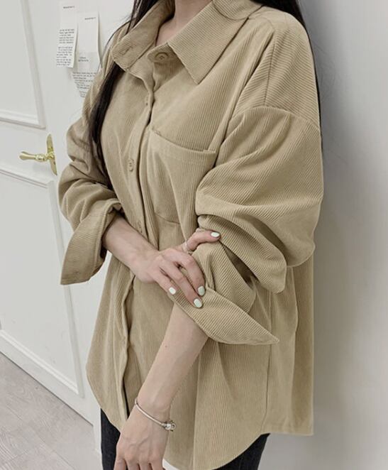 秋冬にピッタリなコーデュロイの長袖シャツブラウスです。